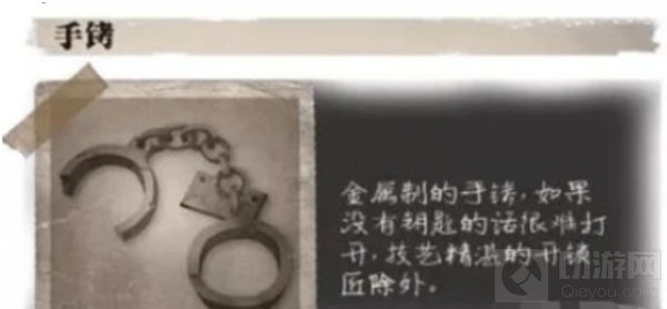 1、手铐——使用金属打造的手铐,如果被这个手铐锁住没有专用的钥匙是完全没有办法打开的,除非你的队友是一个技艺精湛的开锁工匠,这个是双监管者模式中屠夫的一个专属道具,使用的方法是可以把求生者锁起来,被锁后的求生者是没有办法修理发电机的,而且不能有任何的交互动作,只能等着队友来帮忙打开才可以。