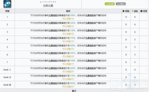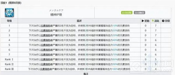蜜莓最常用的一技能“精神护理”,很好用的解手技能,奶二而且持续回复元素损伤面对频率不是很高的元素损伤环境特别好用。