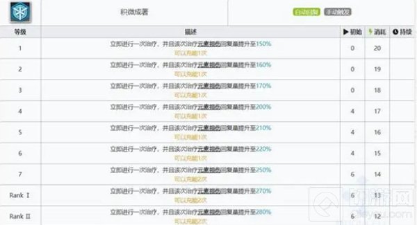 一技能“积微成著”手动开启立即治疗,这次治疗的元素损伤效果提高,是手动爆发回复元素损伤效果的技能,注意这个技能是补增加治疗量的,只能提高元素损伤回复量。一技能可以充能2次。