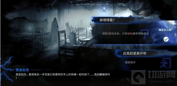 在第一次喂食后,玩家可以选择【再喂喂看?】,同样消耗2目标生命,但是这次只有50%概率成功,失败的话就是直接消耗2目标生命后直接离开。