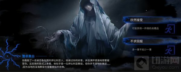 无论是哪种情况,他都会让你在“战斗相关”或者“冒险相关”收藏品中选择一个,只不过审判庭成员的收藏品会提供正面加成,而深海教徒的收藏品则是负面BUFF。