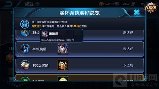 《王者荣耀》的成就可以在个人资料界面进行展示,成就等级对应不同的装备图标,成就等级越高,显示的装备图标也就越发强劲。另外每次成就等级提升时,都可以获得奖励。首先是每次提升成就等级,都可以额外获得100钻石奖励。其次,2、5、10、15、20、25、30这些成就等级还能领取专属礼包,尤其是30级奖励是狄仁杰成就限定皮肤阴阳师,简直不能太幸福。