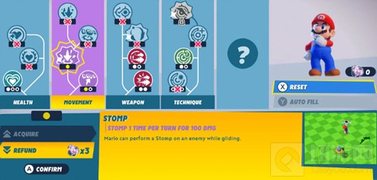 更重要的是,战斗也更加有深度,规模更大的遭遇战会促使你做出更加艰难的战略决策。每个角色都有了更丰富的技能树,他们的玩法风格会促使你选择特定 Build,但每个角色还可以装备两个星琪(马力欧世界的琪琪与疯兔结合的产物),这会为他们提供额外的能力,像是元素 Buff 和元素抗性。它们也会提供额外的攻击法术或是团队 Buff,供玩家在己方回合使用。