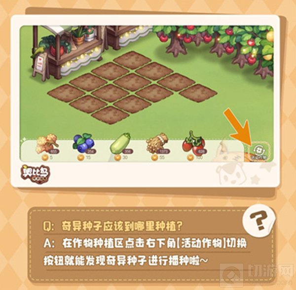 答:在作物种植区点击右下角【活动作物】切换按钮就能发现奇异种子进行播种啦;