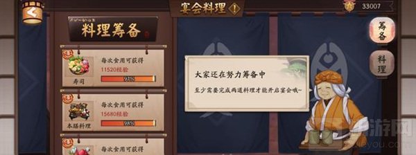 阴阳寮有一个寮内宴会的玩法,没有参加门槛,只需要安排式神参与宴会,在宴会持续时间内及时吃掉刷新出来的美味食材即可有几率获得食材奖励。