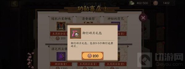 阴阳寮本身通过玩家参与任务活动可以获得功勋值,功勋可用在阴阳寮的功勋商店里兑换材料,而黑蛋碎片和神秘的符咒都是功勋商店的常见物品,每天做满寮任务,获得的功勋值足够用来兑换你所需要的各种材料。