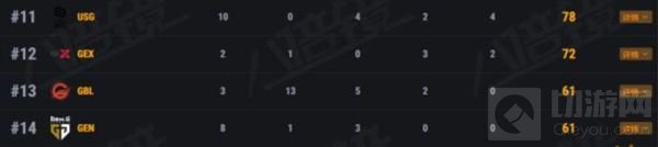 目前的总积分排名中,NH战队以198的高积分力压来自韩国赛区的BGP战队稳居第一。而4AM则是成为了唯一一支总积分不过100的队伍,他们仅有可怜的67分,稳居倒数第一。