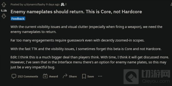 敌人可见度也是玩家讨论的另一大话题。 Reddit 用户 dynamicflashy 编写了一个获得了许多人的帖子,要求敌人头上显示铭牌的功能能够回归。然而,Infinity Ward 表示,它正在寻求的是不仅仅是依靠传统的铭牌提高敌人能见度的方法。