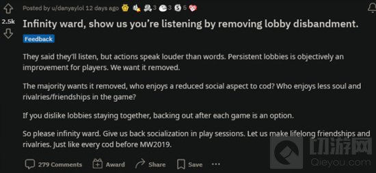 Infinity Ward 目前并不承诺正式游戏会推出该功能,但表示开发团队认为这很重要,并且正在“积极寻找解决方案”。