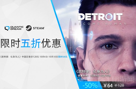 《底特律:化身为人》是由Quantic Dream工作室出品的互动式游戏,目前该作在国庆期间将会开启Steam的史低五折优惠活动,玩家只需要64元就可以获取这款“好评如潮”的游戏,感兴趣的玩家不要错过哦!