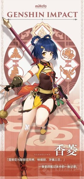 该武器提供的元素充能效率可一定程度 上缓解香菱的充能压力。且暴击率的提升也算是中规中矩的减轻圣遗物词条的部分压力。
