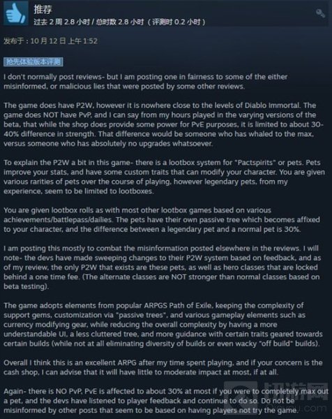 同时也有给出好评的玩家为游戏鸣不平,支持游戏需要Steam以外的其他账号登陆属于正常现象,还有很玩家无法引入游戏是因为还没到开服时间,这些问题不该成为打差评的理由。抛开这些,《火炬之光:无限》可以算是一款优秀的ARPG作品。
