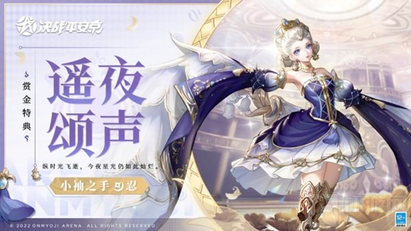 即便大放异彩声名远扬,对于演艺的追求依然时刻铭记于心上。小袖之手全新赏金特典皮肤「遥夜颂声」现已上线!