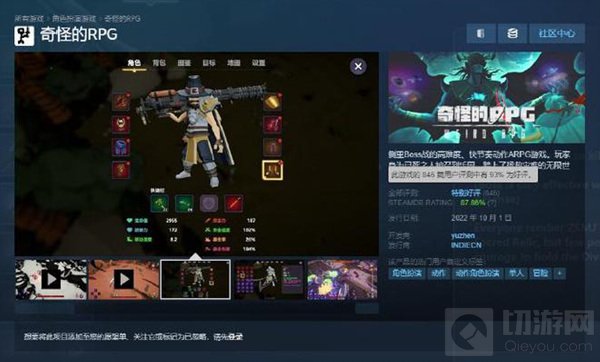 《奇怪的RPG》是一款侧重Boss战的高难度、快节奏动作RPG游戏,游戏主线流程会经历超过十场非常有挑战性的Boss战。本作由个人开发完成, INDIECN发行,Steam国区定价38元。