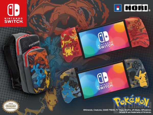 Hori宣布将推一组新的,由出宝可梦官方授权的NS背包和手柄,预计于11月发售。在中国香港地区手柄主要有“皮卡丘和喷火龙”“路卡利欧和皮卡丘”2种配色,单个售价398港币。单肩包则是印有喷火龙、路卡利欧和皮卡丘的图案,售价198港币。