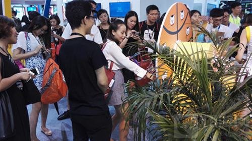 除了游戏试玩之外,咸鱼游戏还为到场的游戏爱好者和合作伙伴准备了好玩的现场互动——周边转转看,随机转都会转到精美呆萌的限量周边哦!而被这些精彩好玩现场互动吸引的游戏爱好者,亦不在少数。每开启限时互动,展台的互动区域人气就随之爆棚,一时之间被围的水泄不通,游戏爱好者也纷纷拿出手机参与活动。