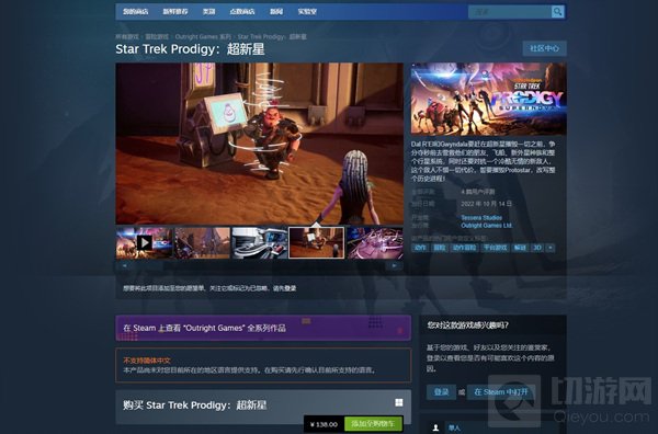动画剧集衍生平台解谜冒险游戏《星际迷航 神童:超新星》现已登陆Steam,国区售价138元,暂不支持中文。在超新星摧毁一切之前,争分夺秒前去营救他们的朋友、飞船、新外星种族和整个行星系统。
