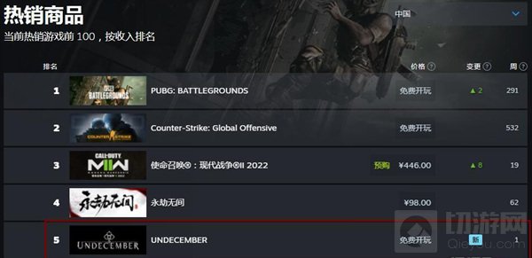 其次,《恶月十三》还排到了显示7天流行程度的指标“最新流行的游戏”(Trending Games)和显示近期上线新作同时在线人数的排名“新作人气榜”(Popular Realease)的第一。而“热销商品排行”则最高达到过第五名。
