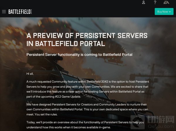 在《战地 2042》官网上发布的一篇新闻中,DICE 宣布将在即将到来的 #2.2 游戏更新中支持永久服务器。永久服务器的添加将允许服务器在服务器浏览器中保持可见,即使服务器中没有玩家,社区成员也可以更轻松地快速启动游戏,而无需服务器所有者登录并激活服务器。自游戏推出以来,游戏一直面临着玩家数量偏低的问题,一度急剧下降,因此 DICE 可能希望添加持久服务器将吸引一些玩家回到游戏。