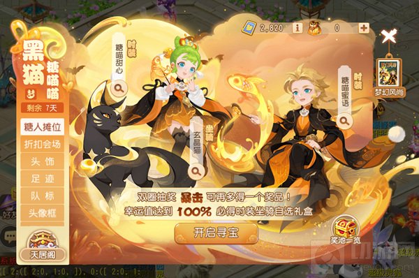 在活动期间,玩家只要购入糖人材料包,即可参与单层转盘抽奖或内外双层转盘抽奖,获取时装糖喵甜心&糖喵蜜语、坐骑玄晶猫、高级魔兽要诀、高级五宝、金钥匙、神兜兜等丰厚奖励。值得一提的是,玩家参与单层转盘抽奖可积累幸运值,当获得满幸运值后,玩家将必得黑猫自选礼盒!而当玩家参与内外双层转盘抽奖时,若转到的内圈和外圈奖励相同,更可额外获得法宝精华礼包奖励哦!