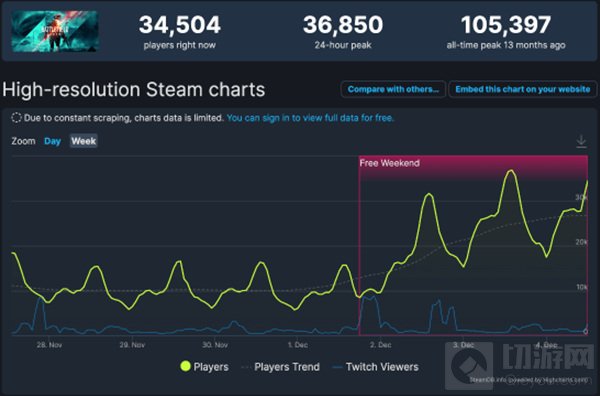 在试玩开启之前,《战地2042》的峰值在线数约为1.7万人。而在目前,游戏的在线人数一直保持在3万以上,截至发稿时间,玩家在线数为34504人,24小时峰值在线数为36850人。