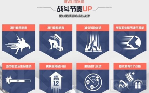 在第一部分“战斗节奏”提升中可以看到八大改善部分。分别是,提升移动速度,提升跑酷速度,减少落地延迟,所有职业赋予滑行技能,击中时显示生命条,更快的角色升级,更快进入交战,基本(开局)持有三个技能等。