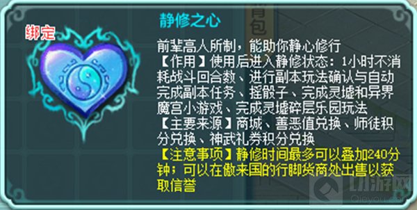 更新维护后,静修之心将迎来优化,新增支持自动完成灵墟碎层部分乐园玩法和副本带队完成支线任务。此外还将新增支持冻结静修状态时间的功能,少侠在结束活动玩法时若静修状态还未结束,便可以选择冻结当前的时间。值得一提的是,静修之心每天的使用次数也将不再受到限制。静修之心的出售规则也将有所调整。
