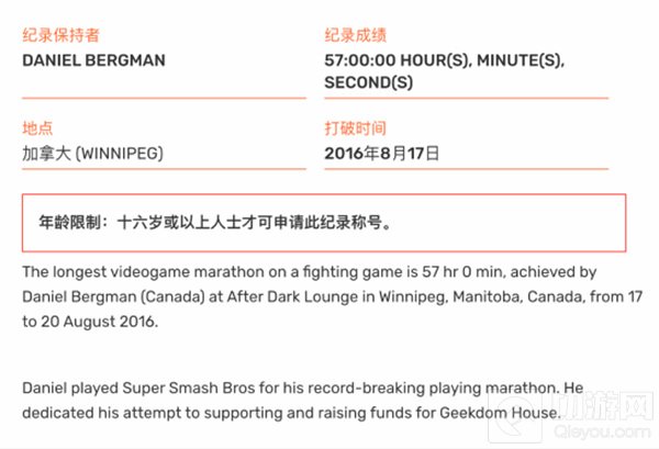 根据吉尼斯官网数据,上一位玩格斗游戏时间最长的纪录保持者是来自加拿大的DANIEL BERGMAN,他在2016年持续玩《任天堂明星大乱斗》时长达到了57小时。吉尼斯官方表示会检查TCNick3的全程视频,确保没有违反挑战规则。