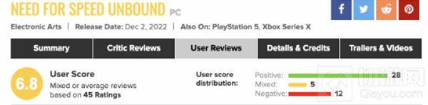 《极品飞车22:不羁》于本月2日正式发售,M站玩家评分现在已经公布:目前PS5版评分7.6,PC版6.8,XSX版7.0(媒体均分80,目前XSX和PC版的玩家评价还比较少)。