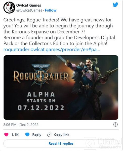 Owlcat Games在推特上宣布说,玩家需要购买游戏的开发者Digital Pack或者收藏版游戏才能获得参与此次测试。需要提醒大家的是,由于这款游戏目前仍然无法在Steam上预购,所以玩家需要从游戏的官网购买它。