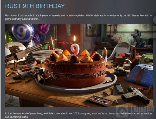 Facepunch表示他们后续还将在12月11日当天再次发布更新档,庆祝本作九周年纪念,届时将提供仅限当天使用的生日蛋糕和生日帽。