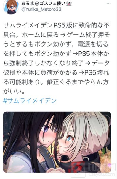 这位玩家表示,《武士少女》PS5版的致命BUG表现为要返回主页时,按下游戏结束键无反应,切断电源也没用,到最后只能强制关闭PS5,这样可能会造成游戏数据损坏,甚至影响主机寿命,建议其他购买了本作PS5版的玩家在官方修复前还是不要再游玩比较好。