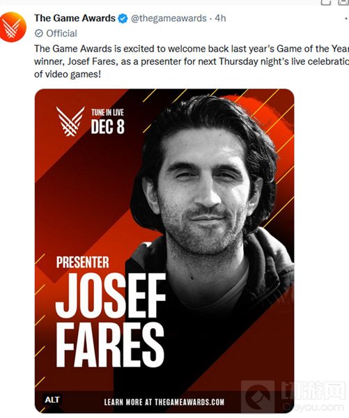 TGA官方宣布,《双人成行》总监 Josef Fares 将参加12月8日举办的TGA颁奖礼,或将成为今年年度游戏的颁奖人。