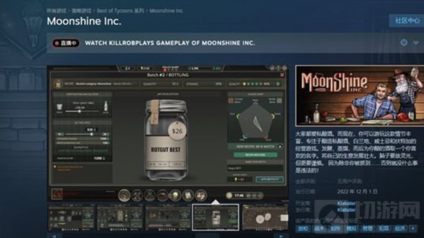 开发商Klabater的新作,酿酒模拟器《私酿酒公司(Moonshine Inc.)》12月1日11点正式发售,游戏支持简体中文。游戏中玩家将扮演以为年轻的私酿酒商,通过一步步的发展将自己的产业壮大,不过得十分谨慎切勿被抓到。
