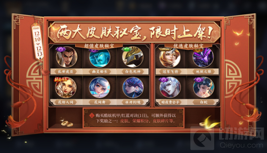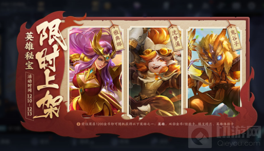 除了上述的活动和新模式之外,本次更新还上新了一款英雄秘宝和两款皮肤秘宝,其中英雄秘宝包括雅典娜、沈梦溪、鬼谷子三位英雄以及其他道具,两款皮肤秘宝则包括了乱世虎臣、冠军飞将、地狱之眼等十款高品质皮肤以及荣耀积分、皮肤碎片等道具。
