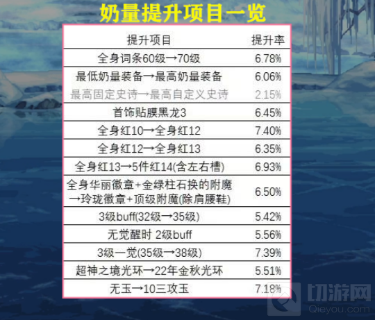 炽天使、小魔女和奶爸三大辅助职业,在110级版本中,奶量提升上的差距,包含了10大项目。当缺少其中一个项目,你在奶量提升方面,会比别人差些。