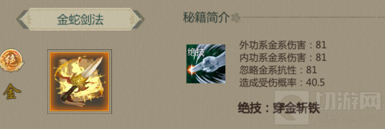 注意,《金蛇剑法》是唯一金色金系外功,有的话必带,其余攻击力+全系抗性的秘籍,可有多种选择,并非要必带我文中提到的那几本,只要是攻击力+全系抗性即可。