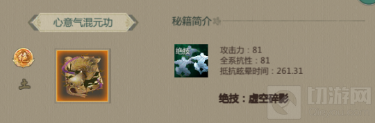 5,《心意气混元功》金色通用攻击力秘籍,效果为攻击力、全系抗性、抵抗眩晕效果,获取方式为秘籍抽取或者拍卖获得,未获得此秘籍可以使用《狮子吼》等紫色通用攻击力秘籍。