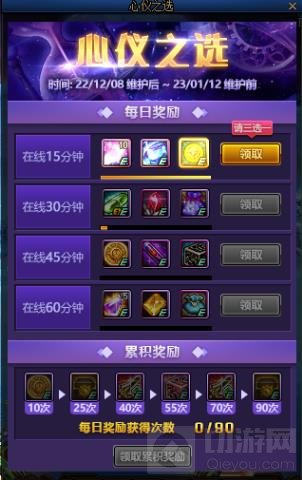 每累积在线15分钟,可在三种奖励里选择一种。本次活动全勤35天,也就是每种奖励可领取35次。