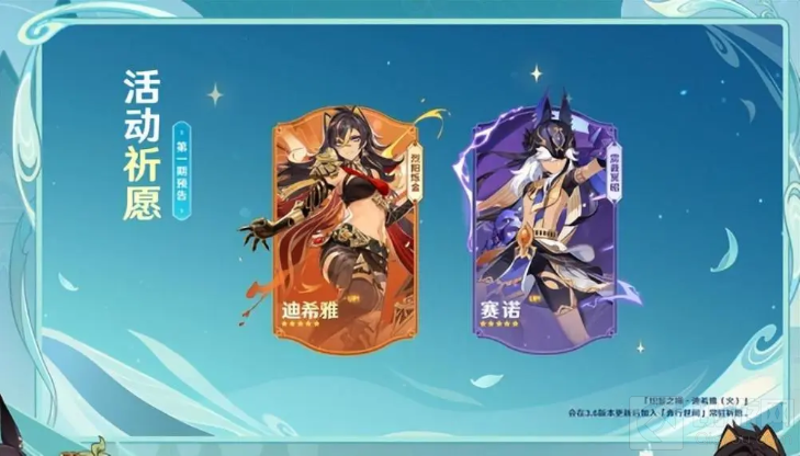 在3.5版本第一期角色活动祈愿中,游戏内将同时开放角色活动祈愿-1「烈阳烁金」与角色活动祈愿-2「雳裁冥昭」。全新五星角色「炽鬃之狮·迪希雅(火)」将出现在角色活动祈愿中「烈阳烁金」中,「缄秘的裁遣·赛诺(雷)」则在角色活动祈愿-2「雳裁冥昭」中迎来返场。「炽鬃之狮·迪希雅(火)」将会在3.6版本更新后加入「奔行世间」常驻祈愿。