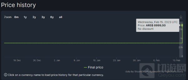 SteamDB数据显示,阿根廷等低价区的《卧龙:苍天陨落》价格大涨。外媒猜测可能与该国通货膨胀和货币贬值有关。