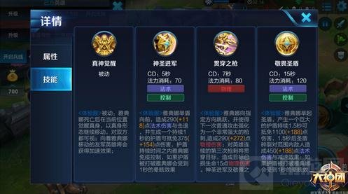 雅典娜的一技能包括突进、法伤、控制、免控。二技能包括突进、物攻、强化下次普攻和第三次枪刺减少一、三技能的CD。三技能是雅典娜伤害和护盾最高的技能,包括高防护盾、高额法伤和减速。综上所述。三技能可以造成的总伤害最高、护盾最强,二技能其次,还能减少技能的CD,所以技能加点我们主二辅一,有大点大。