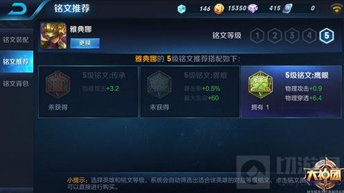 由于攒齐全部五级铭文并不容易,所以我们可以退而求其次使用低等级的铭文。首选性价比高,又适合战士的。而雅典娜的二技能比较依赖攻速,所以我们可以选择4级的蓝色铭文吞噬,增加攻击速度和物理吸血,4级的红色铭文狂热,增加暴击率和暴击效果。