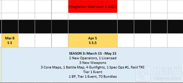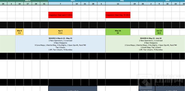 另外,从表中所标注的信息来看(3月8号S3、4月5号S3.5、5月16号S4、6月13号S4.5),每个赛季应该分为两次大更新。