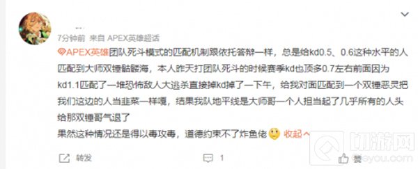 此外,还有网友吐槽“死斗模式”的匹配机制有问题。往往一些游戏水平并不高的玩家,总能遇到能把自己这边的人,当韭菜一样割的高手。这也是重生工作室,目前亟待解决的问题之一。
