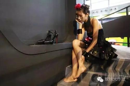 球球宝贝们基本上没有休息时间,在仅有的休息时间内,她脱掉了15CM的高跟鞋,并按摩双腿缓解疲劳,预防静脉曲张。