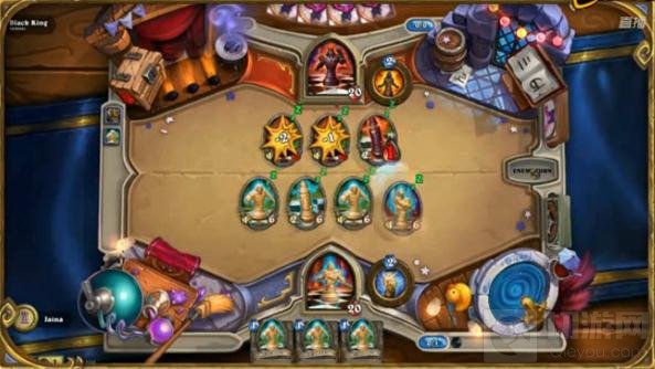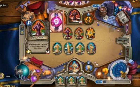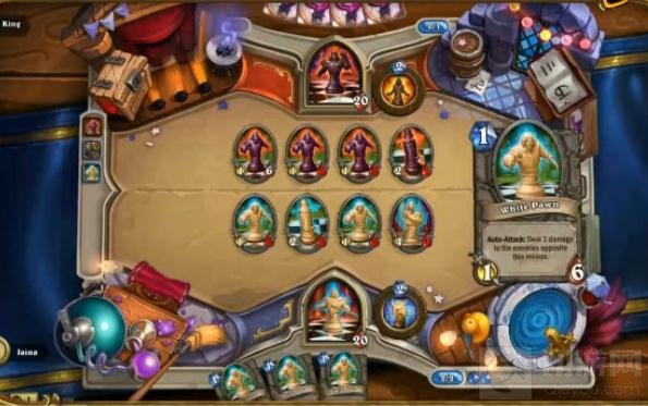 那么问题来了,怎么获胜呢?应该这样理解:如果己方棋子的对面没有敌方棋子,那么棋子将会攻击对方英雄。如此说来,到底应该如何分配你的棋子攻击力,是把攻击高的用来攻击英雄还是攻击对面的棋子,这是一个问题。
