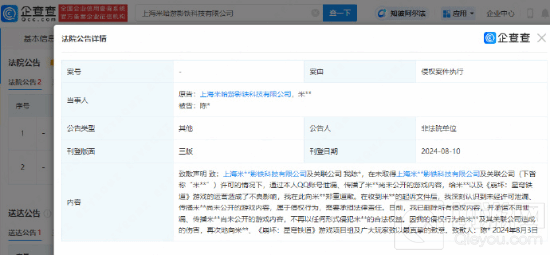 近期,企查查APP公开了一则法院公告,陈某因未经上海米哈游影铁科技有限公司许可,通过个人QQ账号泄露并传播了米哈游尚未发布的游戏《崩坏:星穹铁道》的内容,对公司及游戏运营造成了负面影响,现公开向米哈游、游戏项目组及广大玩家致以诚挚的歉意。