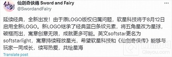 近日,《仙剑奇侠传》系列的开发商软星科技在推特上宣布,由于原LOGO的版权归属问题,公司已于8月12日启用了全新的LOGO,并采用了新的英文名称“softstarlight”。新LOGO保留了经典蓝白条纹元素,将五角星改为星球,破框而出,寓意着创意无限,成就更多可能性。同时,英文“softstar”更名为“softstarlight”,寓意持续释放星光,希望软星科技和《仙剑奇侠传》能够与玩家一同成长,续写热爱,共绘星海。