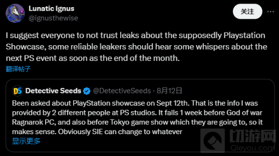 DetectiveSeeds博主也加入了讨论,声称从PS工作室的两位工作人员那里获得了信息,确认PS展会将在9月12日举行。这一日期的披露,为玩家们提供了一个具体的期待点。